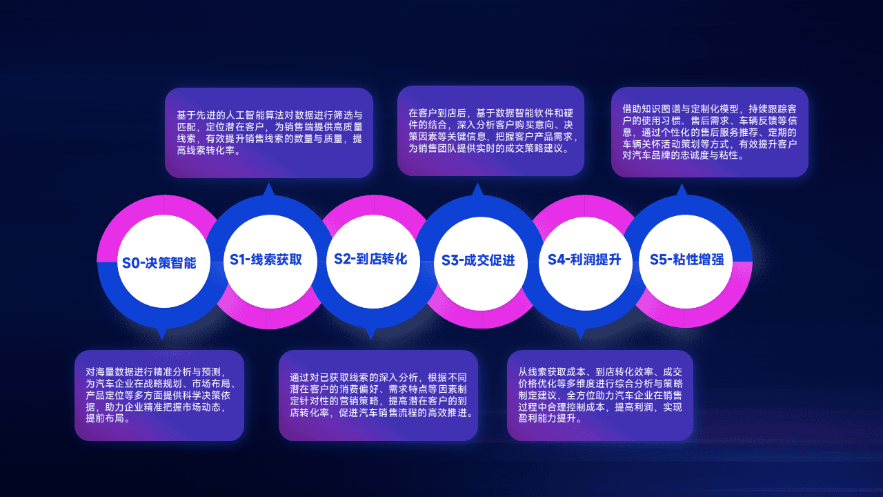 通过拓宽潜在客户来源、、、、优化线索分配并提高到店转化率,,以增强销售效率。。同时,,,,利用线索数据不断优化分析模型,,有效提升转化率,,,扩大营销影响力。。。